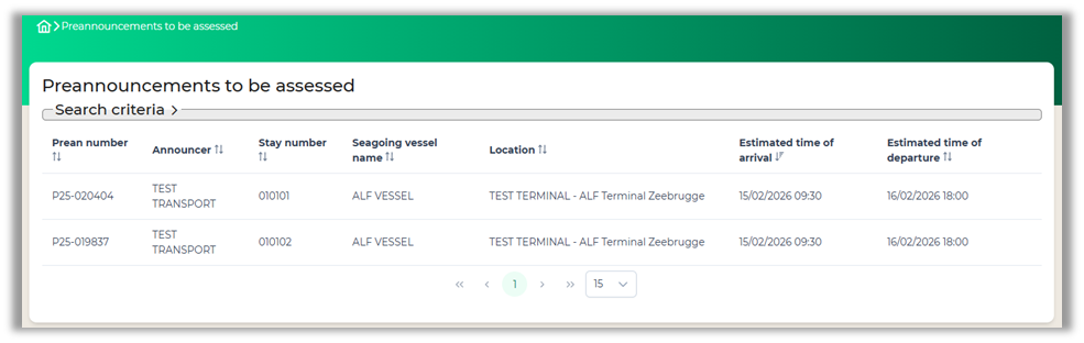 Approving or rejecting preannouncements can be done by opening the view ‘Preannouncement to be assessed’. In this view you can evaluate a preannouncement by clicking on a record.