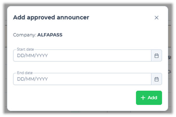 A contact person is always linked to your company and to one or several locations within your company. It’s possible for approved announcers to create a preannouncement for one of your contact persons.
