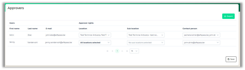 For non-ship-related preannouncements, you also need to register the "Sub-Location." It's also possible to be the approver for a contact person. This person is only linked to a location. In this case, the sub-location is assigned by the approver when approving a preannouncement.