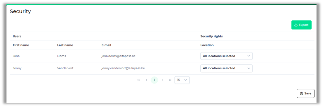 Using the "Security" screen, you can specify which of your users with the "Security" role can register visitors and at which location. You can select one or more locations.