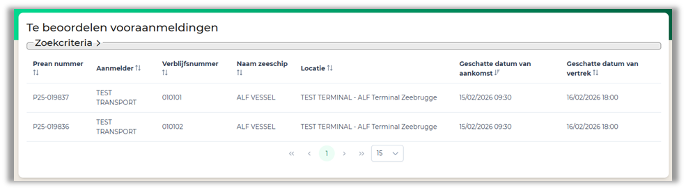 Goedkeuring of afwijzing van vooraanmeldingen kan door de weergave 'te beoordelen vooraanmeldingen’ te openen. In deze weergave kun je een vooraanmelding evalueren door op een rij te klikken.