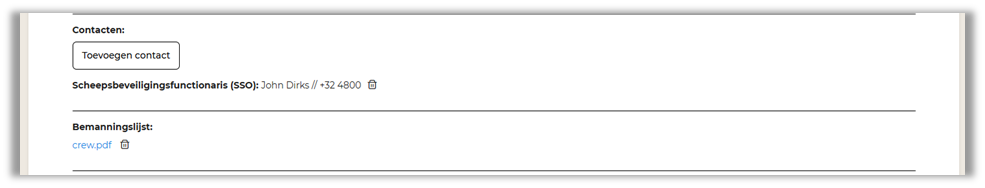 Voeg contacten toe of beheer de contacten voor het schip en upload een bemanningslijst. Deze informatie kan voor sommige locaties vereist zijn.