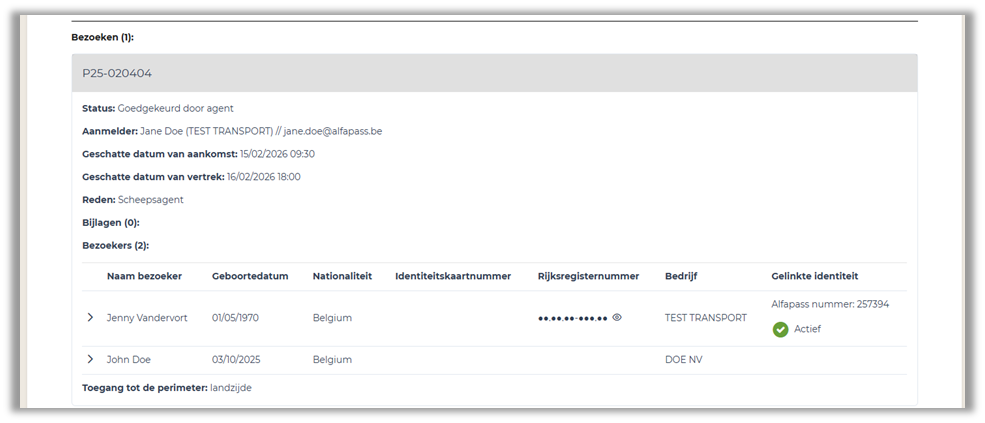Je kunt exact dezelfde details zien als bij het zoeken naar de vooraanmelding via de knop 'vooraankondigingen opzoeken'. Het uitzicht is iets anders, maar bevat dezelfde informatie.