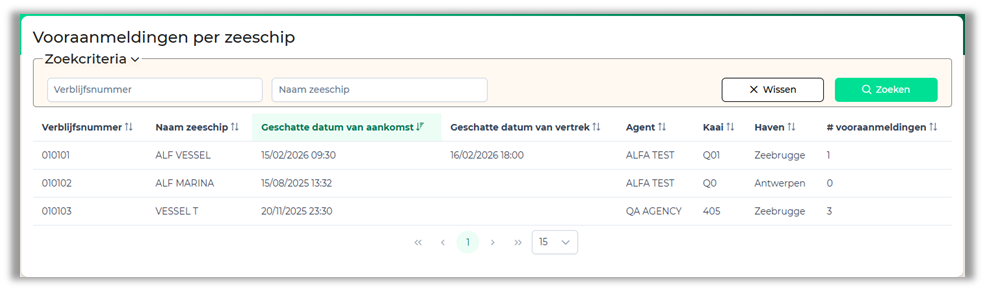 In dit overzicht zie je alle gemaakte vooraanmeldingen voor elk vaartuig.