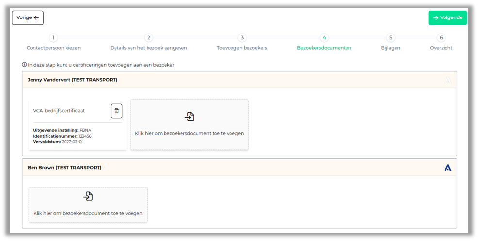Wanneer je gebruik maakt van een Alfapass Lite identiteit kan het zijn dat deze documenten al in het bezoekersprofiel zijn toegevoegd en verschijnen deze automatisch in deze stap.