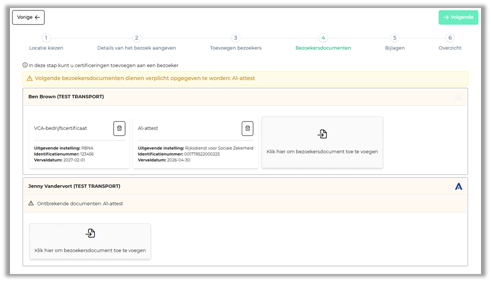 Wanneer je gebruik maakt van een Alfapass Lite identiteit kan het zijn dat deze documenten al in het bezoekersprofiel zijn toegevoegd en verschijnen deze automatisch in deze stap.
