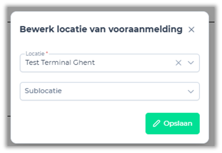- Van een locatie (gebouw, departement, kaai,…) die tot uw terminal behoort.