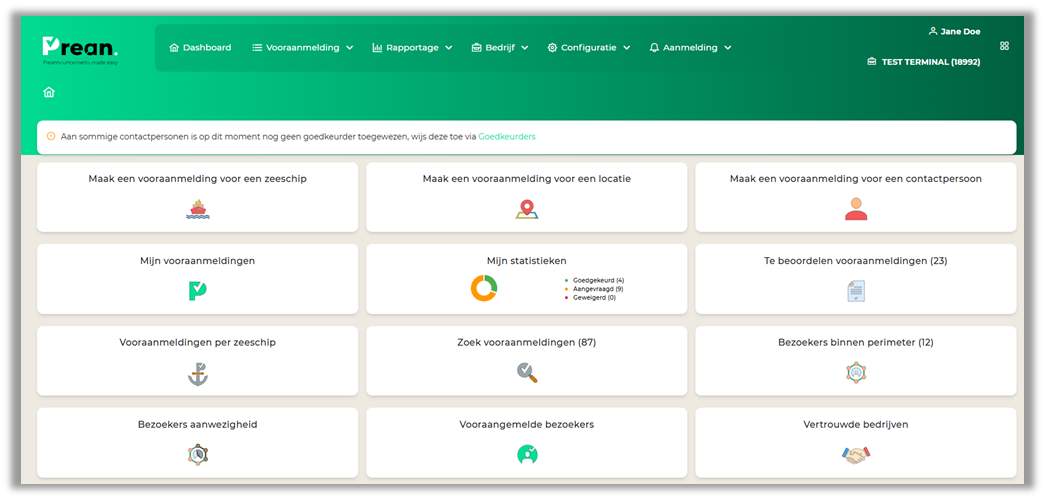 - Van schepen die op de kaai van uw terminal worden verwacht als extra goedkeuring boven op de goedkeuring van de agent (indien gewenst). Dit is configureerbaar door Prean